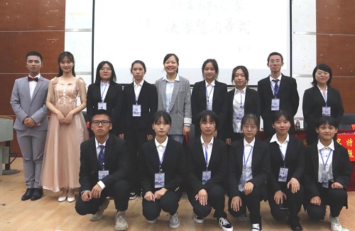 团委书记管胜昔等嘉宾为本次辩论决赛的冠军班级新闻三班,亚军班级新闻一班和季军班级广告二班、新闻一班颁发奖状并合影留念。