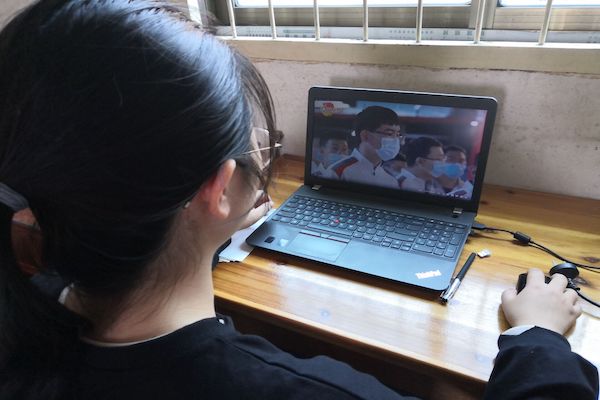 接下来九个学习小组代表就“青年人对扶贫攻坚应有的责任和担当”这一主题进行发言。发言代表们不仅分享了一些攻坚克贫的事迹,还谈到自己的感悟和启发。其中第五组发言代表张宇讲到了宁愿双目失明,誓要群众脱贫,六年坚守在扶贫一线的干部张渠伟。通过调研,张渠伟提出攻坚督战队暗访、“七大”战役攻坚、驻村纪检员和义务监督员双推监督等20余种攻坚方法,破解督导、推进、监管等三大难题。第六组发言代表石钰、第八组发言代表何诗琪都讲述了自己身边的扶贫故事。还有一些代表提到了为扶贫工作献出了自己生命的干部黄文秀、郭彩廷。一个个扶贫干部坚守在大山深处,扎根基层,帮助贫困群众办实事、解难事的感人事迹,让同学们深刻地认识到自己肩上担负的使命。