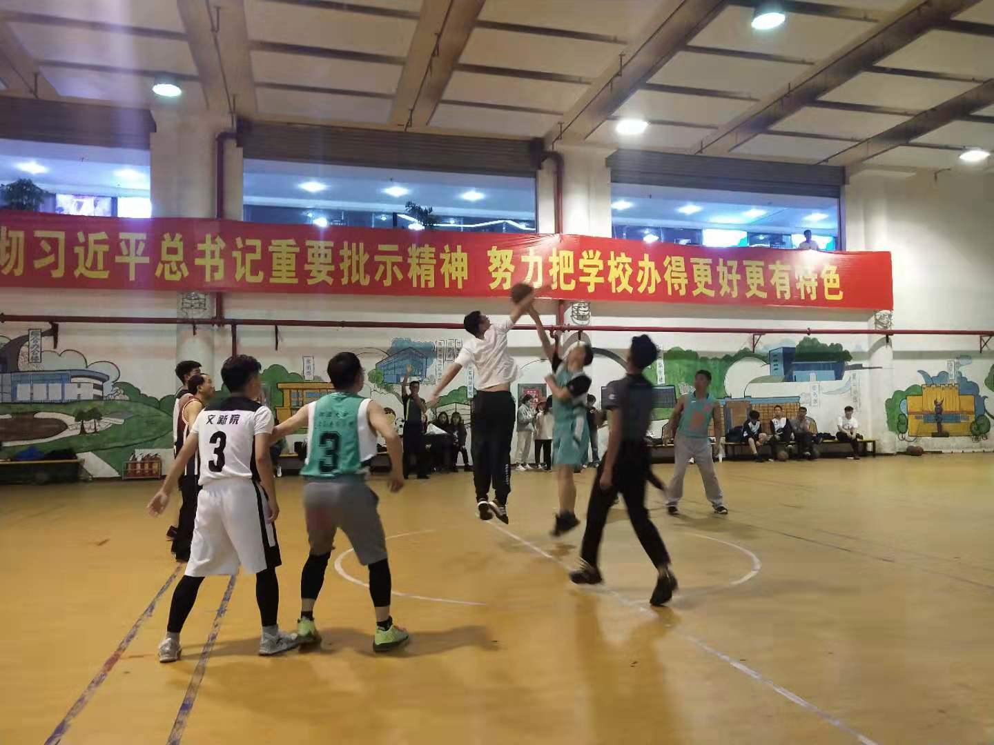 比赛后半场,两支球队及时调整战术,争分夺秒,奋力追赶,力求为队伍争夺最后的胜利,场上比赛氛围愈演愈烈。挡拆、跑位、进攻!赛场上高潮迭起,精彩不断,扣人心弦,双方比分交替上升。虽然学生队提升了比赛的节奏和速度,三节结束时将比分追至只差1分,但是教师队的攻势依旧不减,阵地中一次次默契的传球、精准的挡拆、潇洒的投篮,让场下的啦啦队热血沸腾,也让教师队士气高涨,比分始终保持领先。时间一秒秒的流逝着,当周鹏飞副书记的一次超远三分出手,全场比赛结束。老师队以60:55的比分拿下比赛。