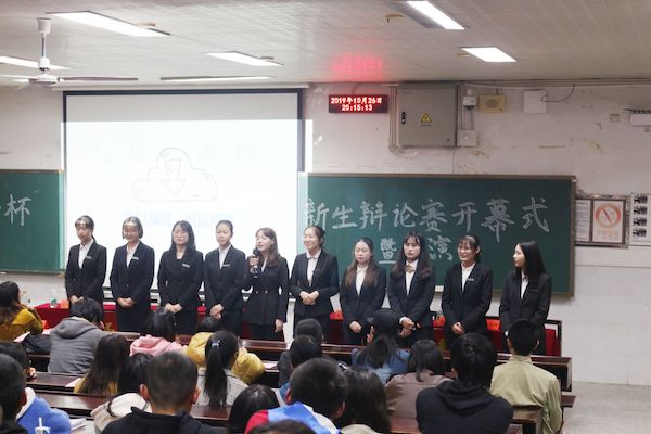 辩论队队伍的简介以及成员的介绍。最后播放辩论队风采视频,各班辩导登台亮相进行自我介绍。