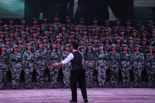 歌声悠扬,内心激昂,伴随着《我和我的祖国》熟悉的旋律,满堂师生挥舞手中小国旗,百人大合唱就此拉开序幕。刘建平副校长作开场致辞,“合唱是男同网