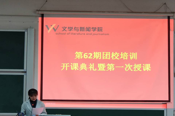 第62期团校培训开课典礼暨第一次授课在经管四阶如期举行。本期团课由组织部干事毛俊桐同学主持,到场嘉宾有男同网