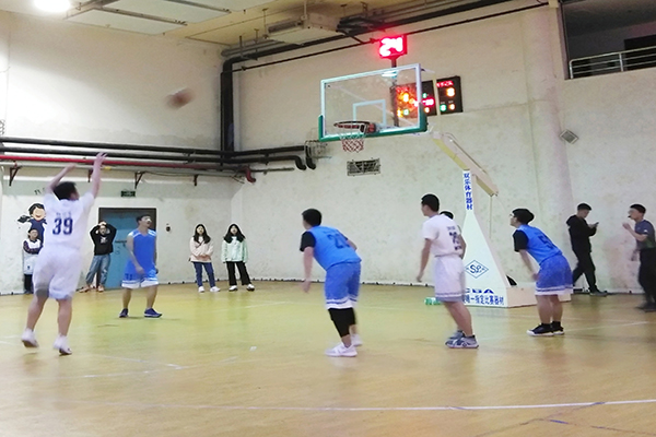 “五四风茂杯”师生篮球比赛在新体育馆负一楼篮球馆举行。本次比赛对阵双方分别是赵书记队和周书记队。