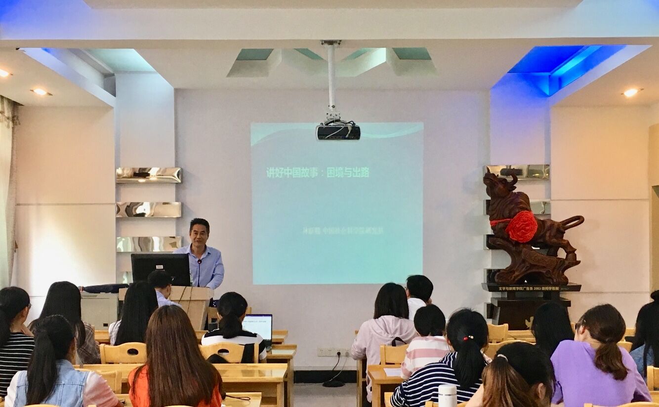 “中国故事讲什么?”林教授用“李小龙”“华为”“墨子号”“中国高铁”等中国符号做引,指出应聚焦传播热点,塑立传播符号。在讲中国故事的过程中,要立足中国特色、中国历史的基础上探寻国际社会共同关注的话题。在选取传播内容时,要在树立中国良好形象的基础上,还要坚守传播的真实度和客观性,针对我国发展的短板和不足也要适当的予以反映,让故事丰满真实、客观合理。