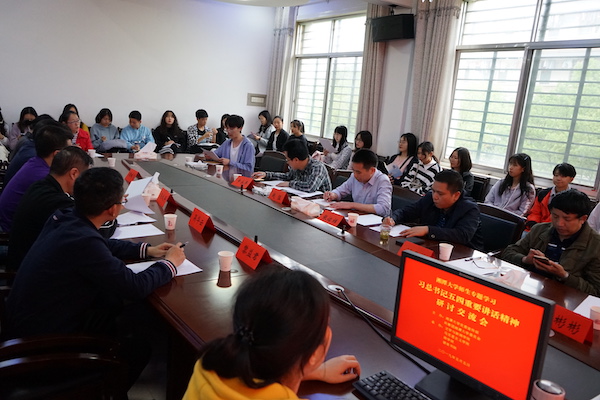 习近平总书记的谆谆教导,让青年大学生深有感触。商学院学生代表赵智能、周志辉结合习总书记的重要讲话精神,分别从当代青年应当投身于志愿服务、实践方能出真知和青春切莫虚度几个方面谈了体会。马克思主义学院张甲英、李阳,碧泉书院张悦认为青年应当追求进取、奋斗不息,抓住时机,把握韶华,在年轻的时候为国家为社会尽一份心、出一份力。碧泉书院唐杨讲述了自己对家国情怀与理想信念的理解。男同网