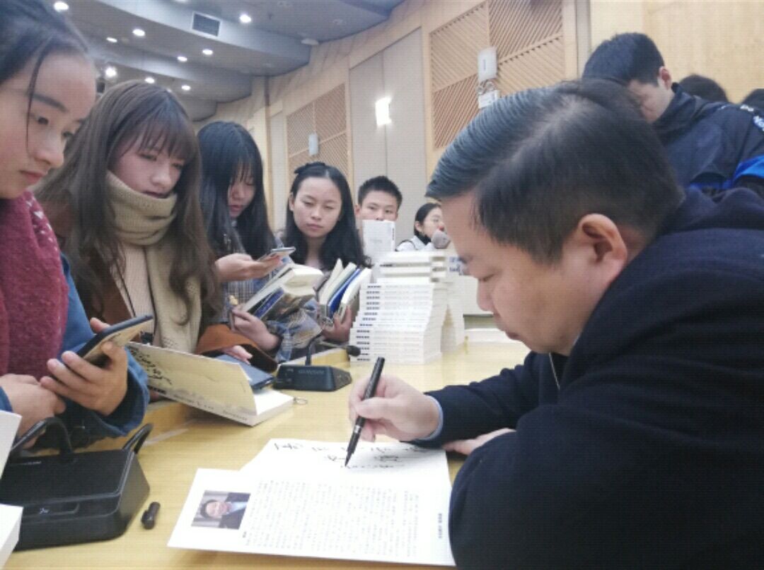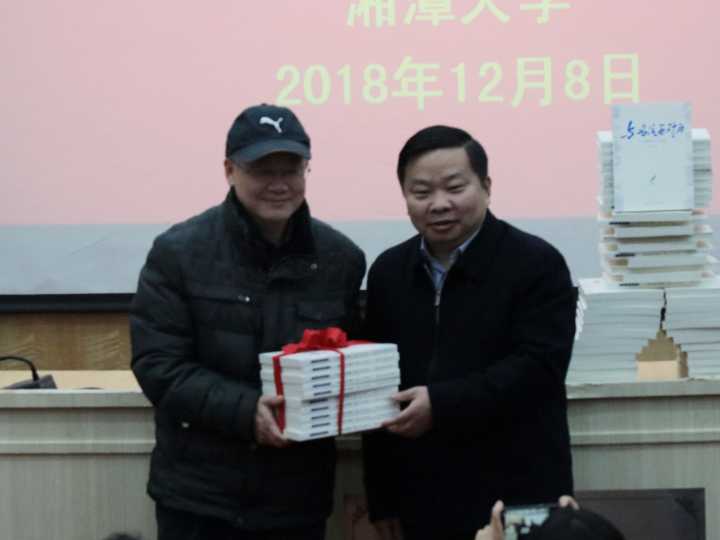 赠书,并深情讲述了《与名流面对面》一书背后的湘大故事,让在场的专家、教授与学生深受感动和鼓舞。