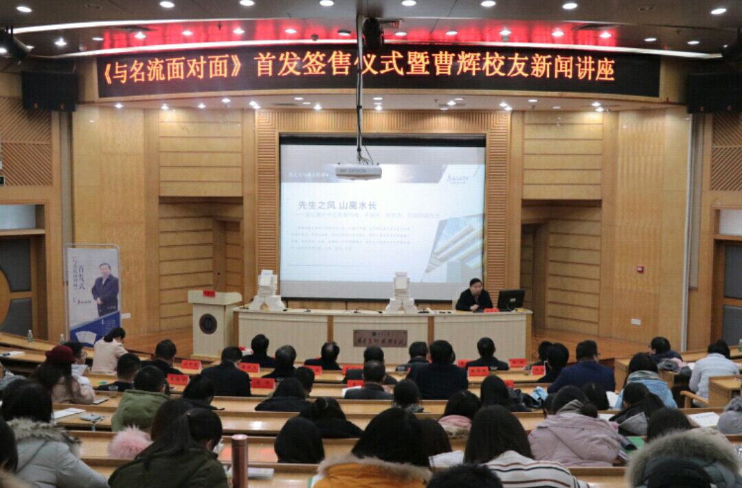 图书馆报告厅里却是人声鼎沸、掌声雷动,《与名流面对面——曹辉新闻作品精选》新书首发式、新闻讲座暨签售活动正在此举行。