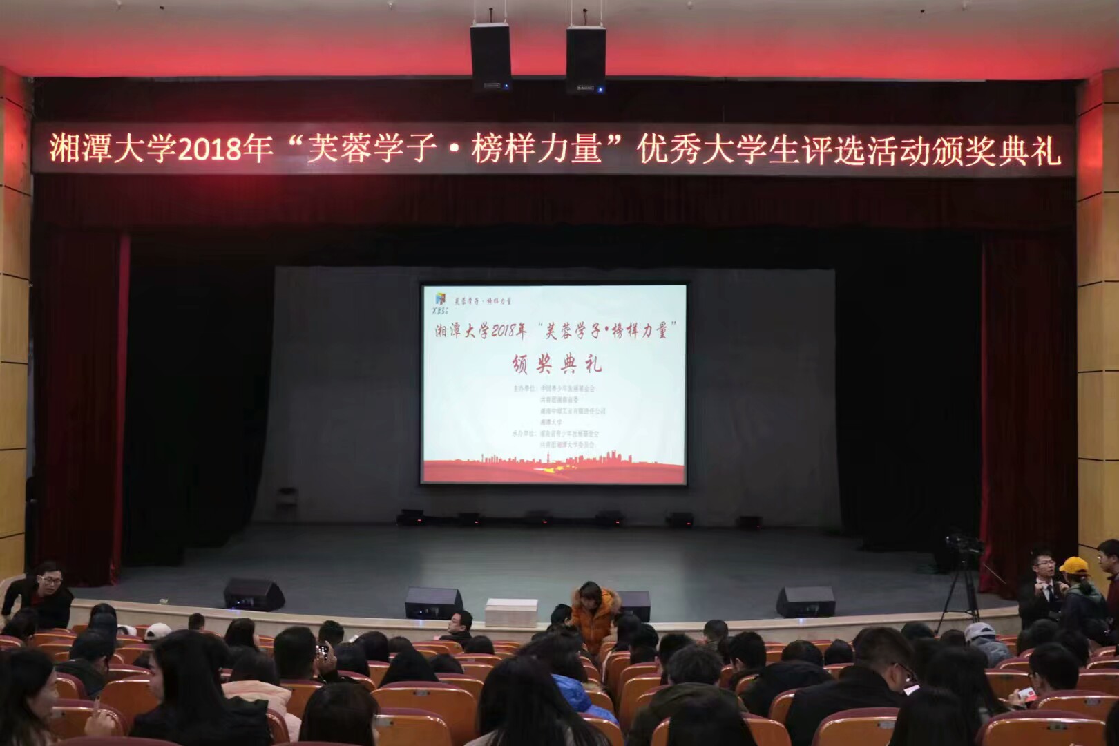 2018年“芙蓉学子·榜样力量”优秀大学生评选活动颁奖典礼在学生中心报告厅举行。历经二十五天的评选,男同网