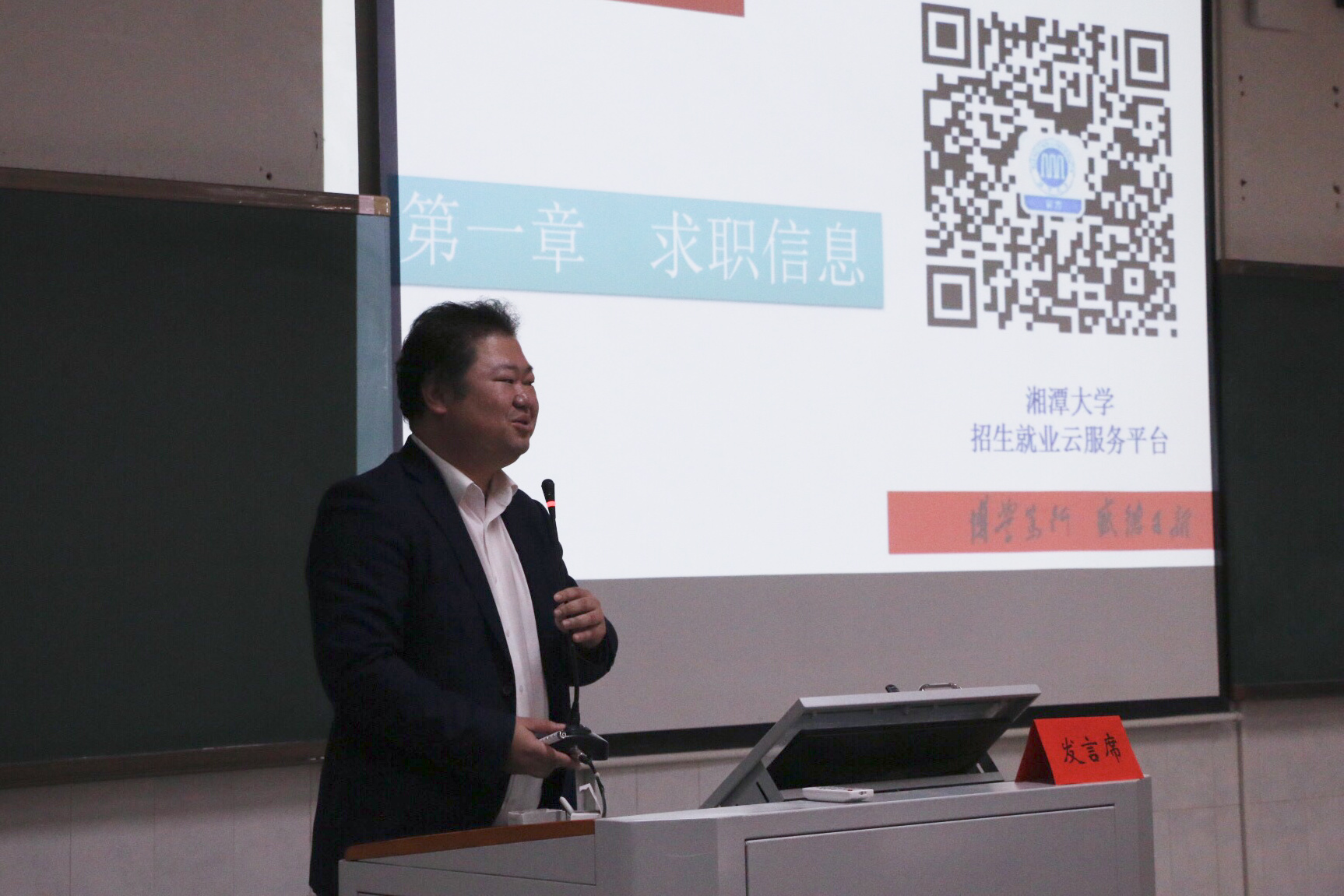 张老师发言结束后,由招生就业处符文祥老师讲话。他首先和同学们回顾了自己当年大学毕业时找工作的状况,他表示那个年代大家都挤破脑袋要去国企。然而对比现今,湖南省农商行的招聘竟没有同学报名。因为录取可能性大,他鼓励大家要积极报名。接下来他还给同学们介绍了校园招聘会、公务员考试等十个应届生常见就业渠道,希望大家把握机会,都能找到心仪的工作。符老师还强调了填写出一份好简历的重要性,他说“简历写得好不好决定了能不能获得面试机会”。以科协培训部部长为例,他向同学们传授了如何将简历填好的秘诀——“量化”,将模糊的成绩具体量化。同时他认为在面试过程的发挥也很重要,大家一定要沉重冷静,认真面对。最后符老师还将联系方式告诉了同学们,方便大家有问题时联系他。