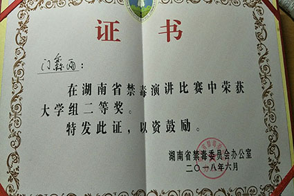 17级新闻传播学类专业1班学生门鑫雨的演讲《生命的花田中禁种罂粟花》得分9.60分,荣获得大学组第二名的优异成绩,为我校增光添彩。