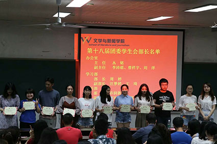 第十七届团委学生会年度表彰述职大会暨第十八届团委学生会受聘大会于经管楼第三阶梯准时举行。出席此次活动的人员有男同网