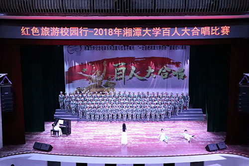 “韶峰高,湘水长,人文圣地,科教殿堂……”一首校歌,拉开了比赛的序幕,赛场内人声鼎沸,鼓乐齐鸣,热闹非凡。参赛选手都身着整齐的军装,以蓬勃向上的面貌参与其中。随后,一首首红色革命经典歌曲响起,回荡在比赛现场。《天耀中华》、《歌唱祖国》、《我和我的祖国》、《我爱你中国》等经典歌曲,展现了当代青年对祖国朴素而又深沉的爱。激昂的旋律、感人的词句,感染着台下的每一位观众,锣鼓声、口号声,此起彼伏。