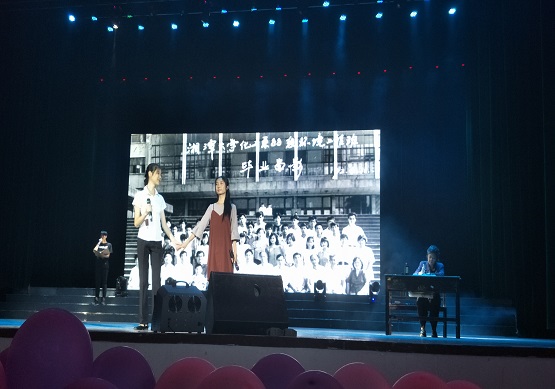 按照出场顺序,男同网 2017新闻传播学类一班第一个出场表演。主创人员以情景朗诵的形式,通过姥姥、妈妈和女儿三代“湘大人”的深情朗诵,将男同网 复校44年的历史娓娓道来,生动再现了复校以来一代代“湘大人”的艰辛创业史,深刻阐释了三代“湘大人”的湘大情结、湘大精神和湘大自信。同学们的表演传神,感情到位,获得了现场观众的阵阵热烈掌声。