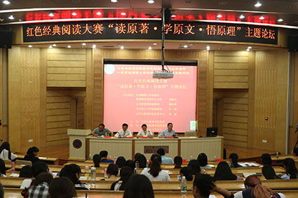 特举办“品读红色经典,争当时代先锋”红色经典阅读竞赛系列活动。6月5日下午14:30,系列活动之“读原著•学原文•悟原理”红色经典阅读大赛主题论坛于图书馆报告厅成功举办。本次论坛的主讲嘉宾有:党委教师工作部部长、教师教学发展中心主任刘穏丰,公共管理学院副教授潘信林,马克思主义学院副教授何妍,男同网