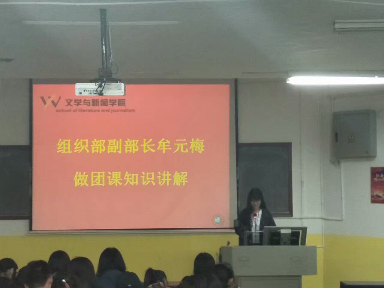 第59期团课第二次授课在北山第三阶梯教室成功举办,此次团课由组织部副部长牟元梅做团课知识讲解。
