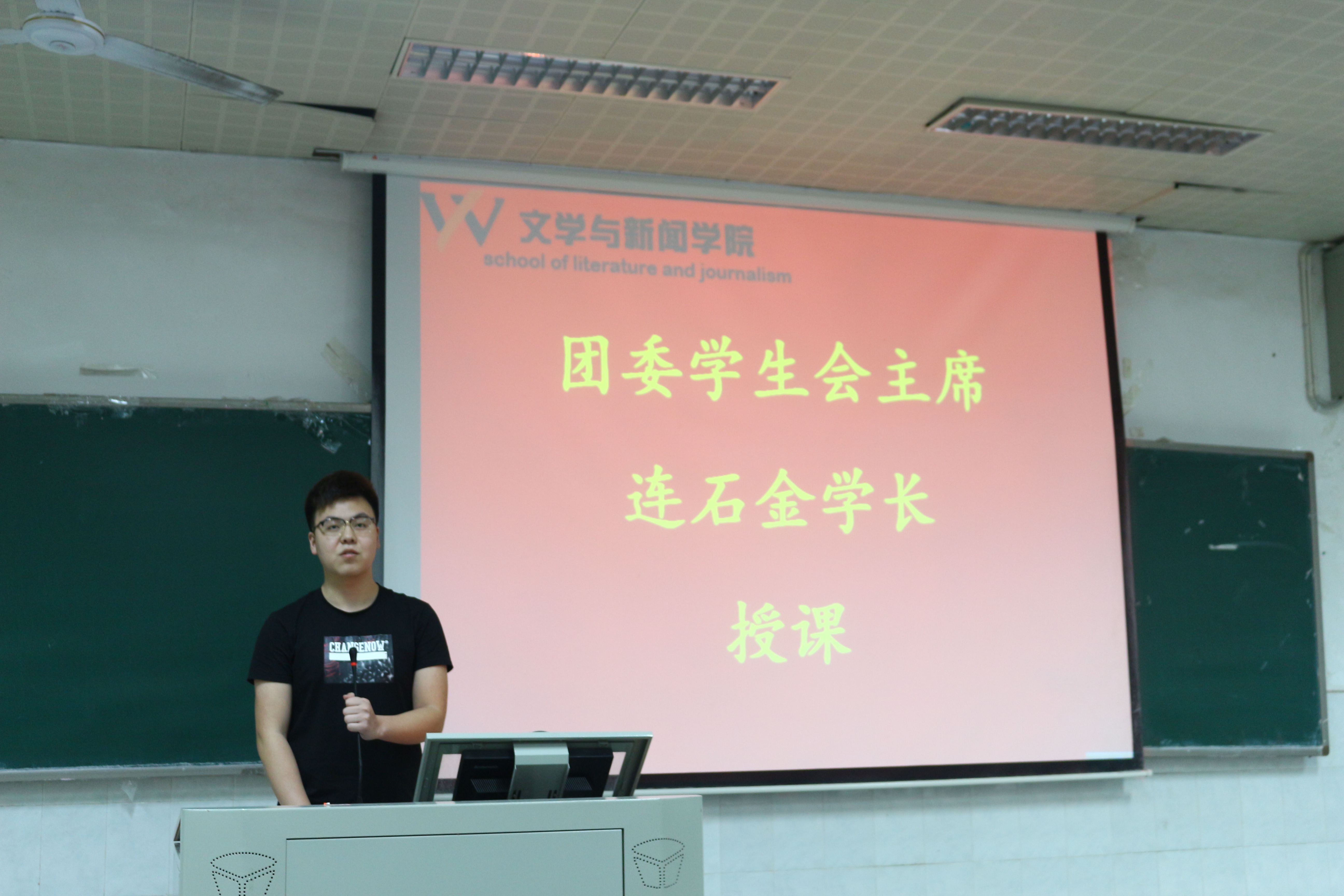 团委学生会主席连石金和组织部副部长王坤出席活动。团委学生会主席连石金以“献礼中国伟业,纪念建军九十周年”为主题进行授课,组织部副部长王坤做团课知识讲解。