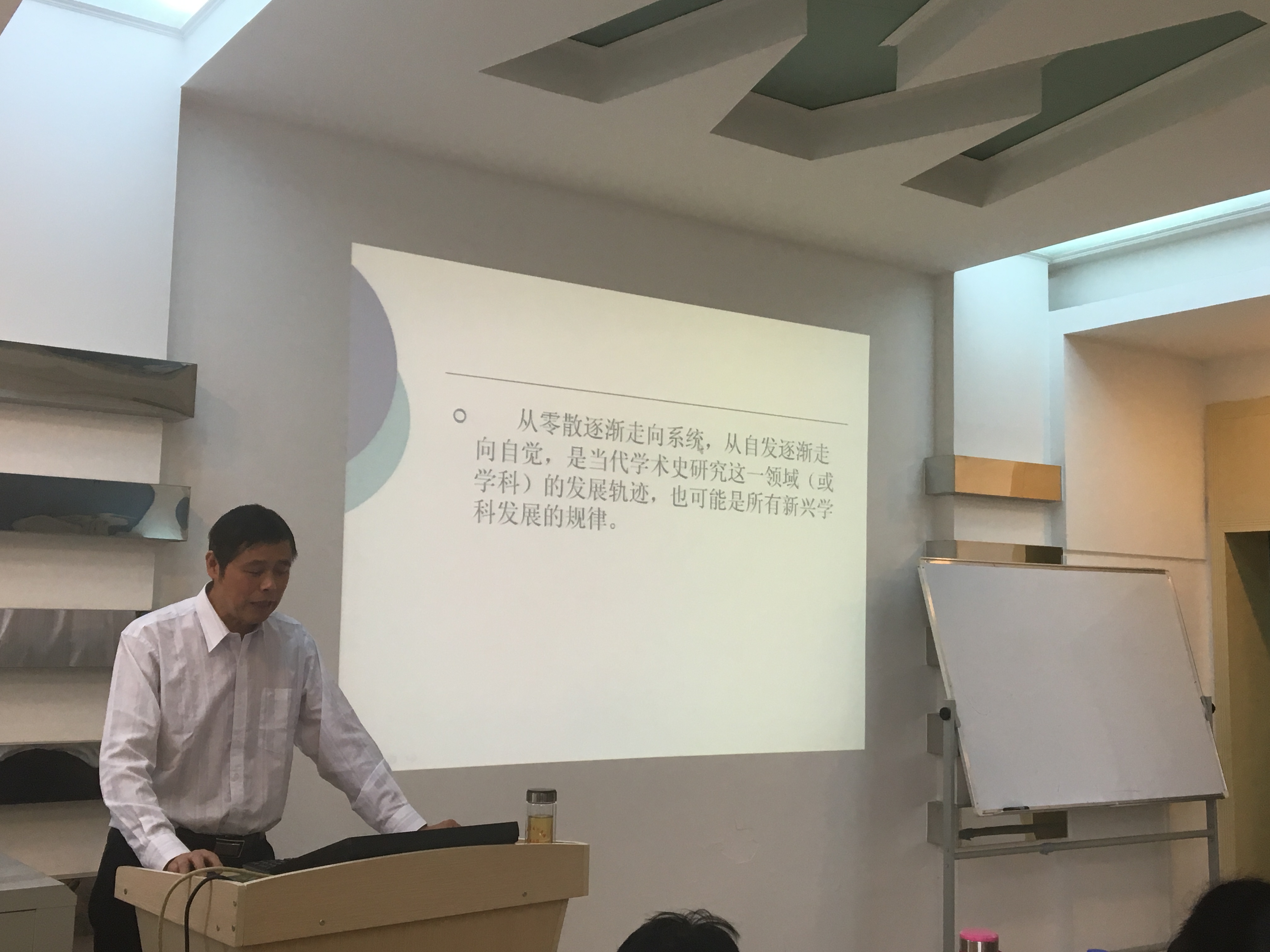 余三定教授的讲座以“当代学术史研究”为主题,从该研究命题的界定、研究历程的简要回顾、研究的基本方法以及研究的未来展望四个方面展开,通过图文并茂的形式向师生们详细地阐述了学术史的相关内容,讲座中还向同学们介绍了相关学术史著作供同学们参考。