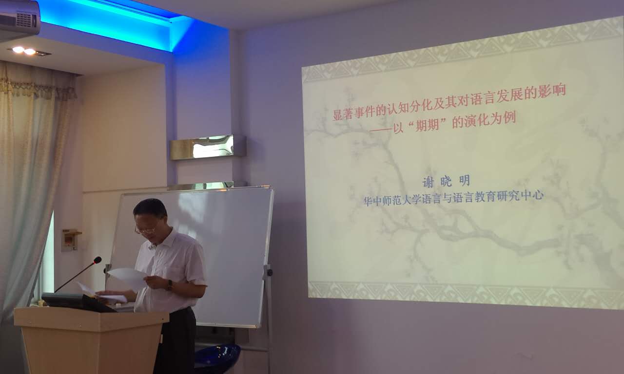 谢晓明教授首先指出显著事件就是一般由知名人物或媒体引发,或由热点社会事件所引发、社会关注度较高的事件。这些显著事件对于语言发展都会带来影响。此后,他通过“期期”作了具体的分析。“期期”有三种主要使用情况,一为口吃;二为量词;三为表实在、务必的语气。而在大量的词典,“期期”并未收入当中。由此可见在现代汉语里“期期”成不成词目前还没有引起关注也没有定论。随后,通过对《史记》、《史记正义》等等书籍中的“期期”使用分析,探讨“期期”的来源,“期期”的含义及其发展变化。谢教授认为,首先“期期”确实符合口吃的一般特征,而在《史记》中,司马迁使用的“期期”是有意为之,一举两得。既有口吃的意思,同时也重复了语气副词“期”。谢教授对于“期期”的词汇化过程作了分析阐述,最后得出结论,在当代汉语“期期”的使用频率上升,且用法有所扩展,认为已基本词汇化。而作为拟声词“期期”的词汇化机制主要汉语词语双音化的影响。副词“期期”的词汇化机制则相对复杂,它是语气副词“期”从构形重叠到构词重叠的演化结果。词汇化的外部原因是偶发性的语言相向,通过权威媒介和典型人物而得以广泛传播和引用。通过对“期期”的研究分析,引发了谢晓明教授对于其他相关问题的讨论,并认为现代汉语在自主地走向拼音化、形态化。