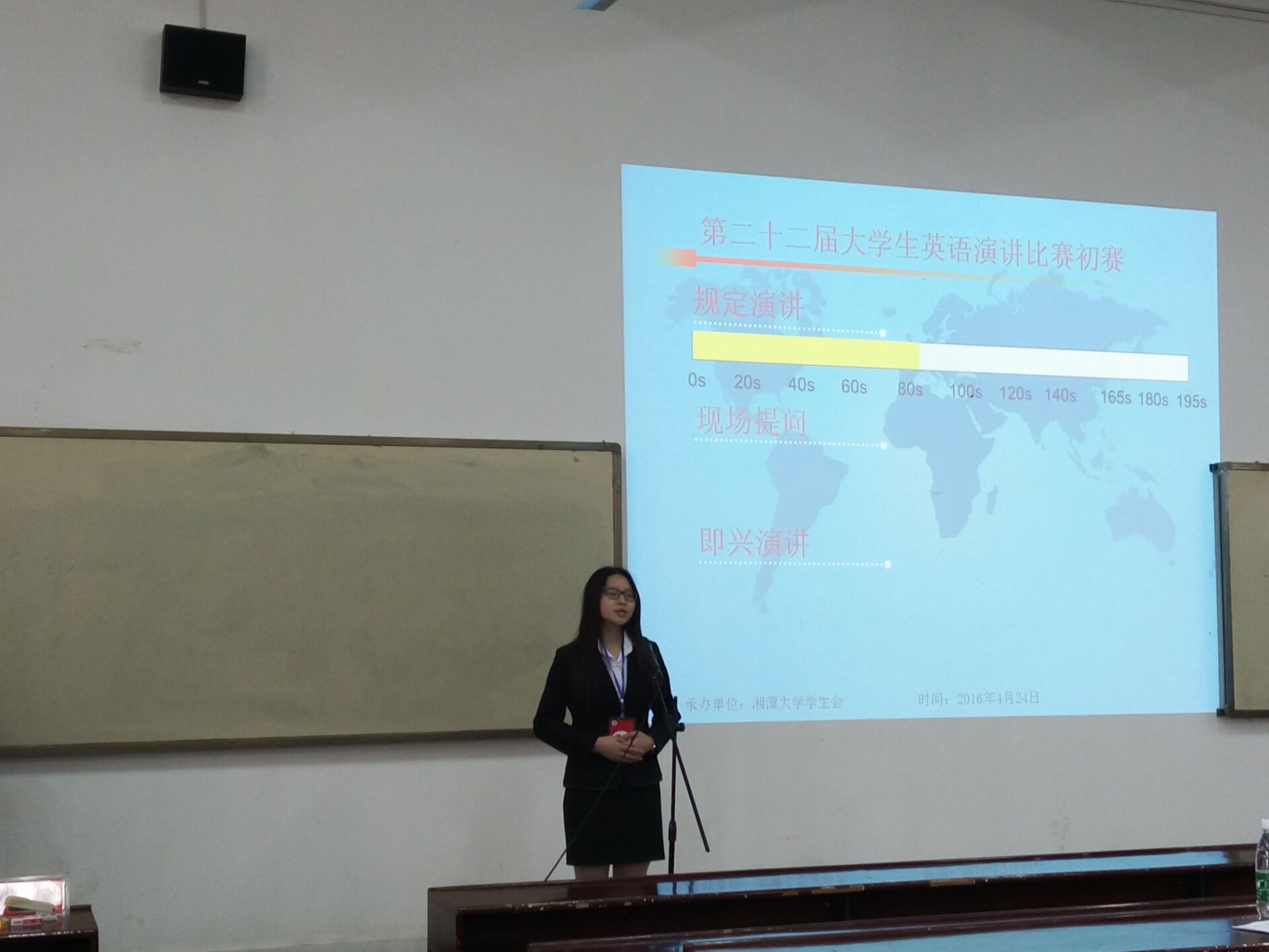 4月24日,“在逸夫楼阶梯教室举办。活动共分为三个环节,规定演讲、现场提问及即兴演讲。