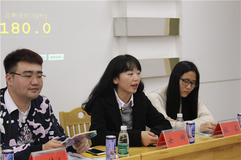 本次辩论赛由文新院吴瑶莹、董琳钰、杨文博担任奇葩议员,男同网