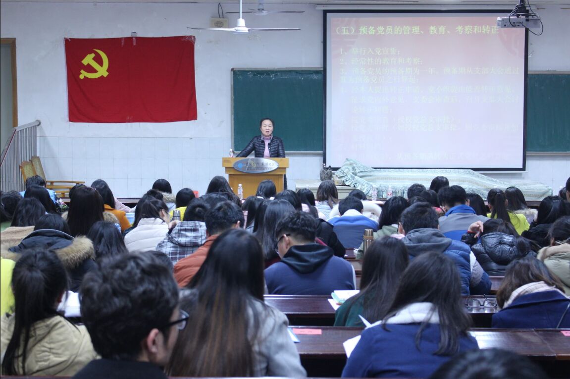 团委书记管胜昔老师、旅游管理学院入党培训班班主任陈敏老师,刘纯老师担任此次授课的主讲人。课上,刘老师主要向同学们介绍了入党的要求和程序,传授了入党的相关知识。