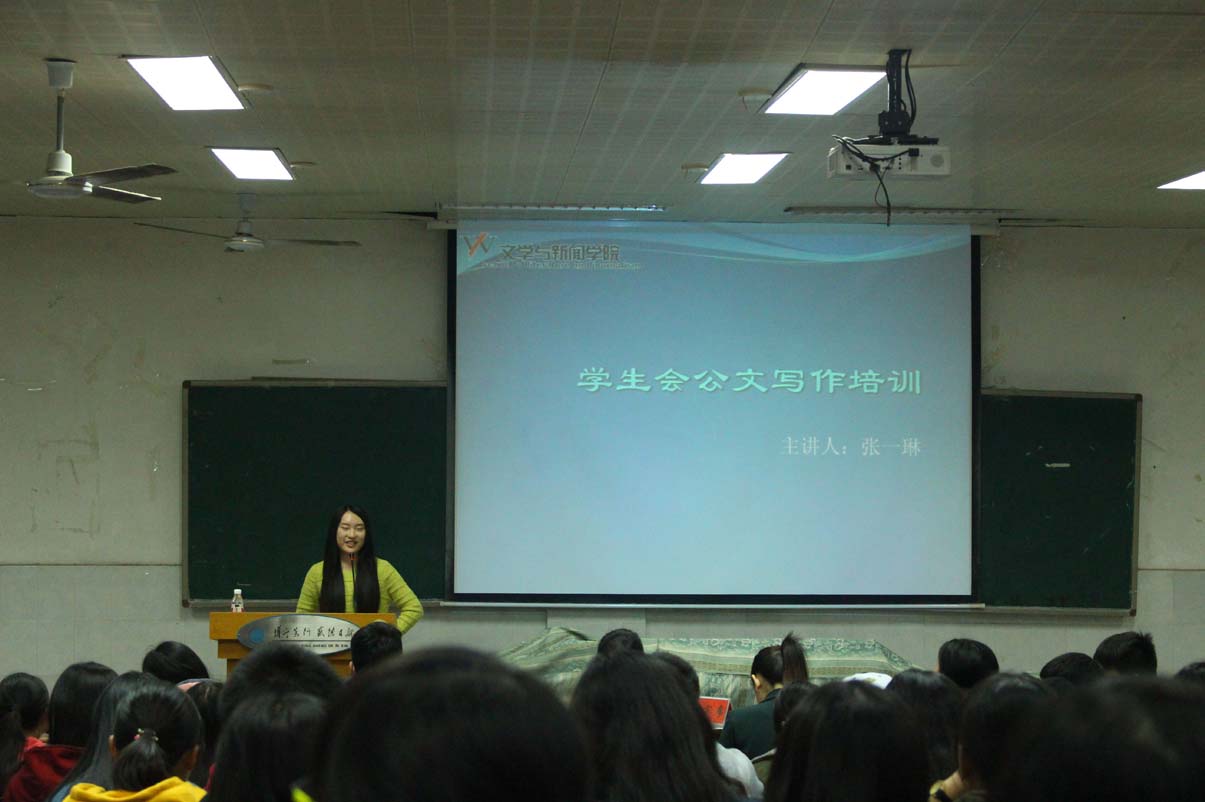 紧接着,张一琳又向新干部干事教授了学生公文写作的方法。她向我们介绍了公文的定义、公文的特点、公文写作的基本要求以及学生会常用的公文种类。还讲解了活动策划、工作总结、通知、会议记录等的写作注意事项。这些讲解非常实用,对于干部、干事以后的工作有很大的帮助。