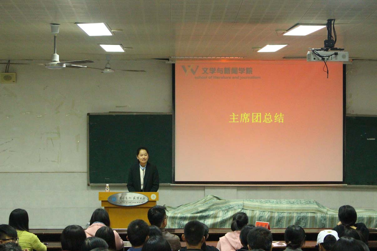 最后,白露对大会进行总结,表达了对洪晓婷为新一届干部干事进行培训的感谢,又送给大家一句电影台词:“追求卓越,成功就会在不经意间找到你”,道出了对学生会成员能够追求卓越、努力工作,从而学到更多技能的祝愿。