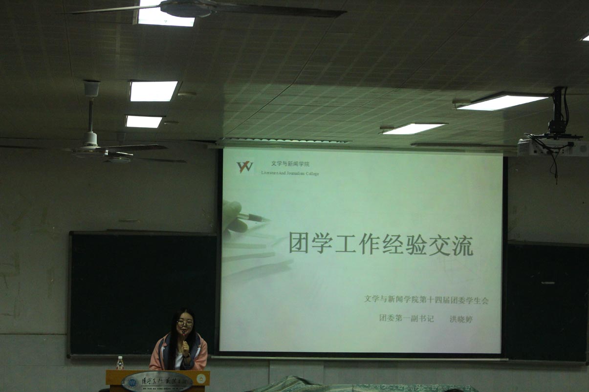 团委学生会“打造魅力团队,展现文新风采”的工作理念,“上为领导分忧,下为同学分忧”的工作宗旨,以及“山一样沉稳,水一样灵动”的行事风格。随之,与主席团成员分享了三个词:统筹、制衡、视野,希望他们能够统筹安排,学会制衡,扩大视野,与部长们分享了“三感”:责任感、方向感、平衡感,希望他们在以后的工作中能增强责任感,对部门发展把握好方向,对新干事的培养做到平衡。对于新干事,她希望大家正确认识学生会,把积极的态度和良好的礼仪当成一种习惯,能够在团委学生会的工作中把握方向、做好工作并提升技能。同时,她也和大家讲述了自己的实习经历,分享了学生工作带给她的许多益处。最后,洪晓婷送给大家一句发自肺腑的话:“既来之,则乐安之”,希望大家能在以后的工作中学到更多技能,收获朋友和快乐。
