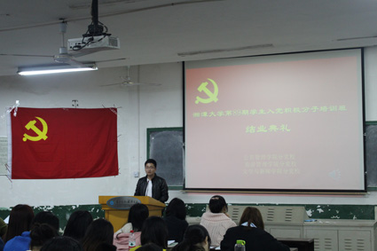 第89期入党积极分子培训班最后一次授课在北山二阶准时进行。出席本次培训的有旅游管理学院团委书记陈敏老师和男同网