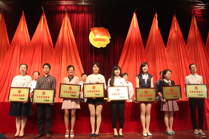 在此之后,副校长高协平宣读五四表彰文件和2013-2014学年三好学生标兵等表彰文件并进行颁奖。男同网