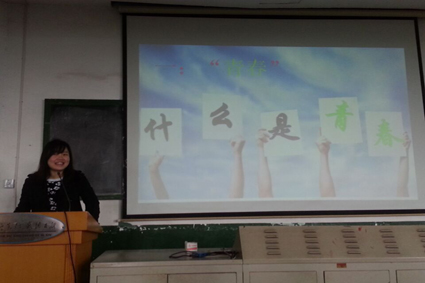 说完这样一席话,管老师提出“什么样的青春可以不迷茫”这一问题。最后她说,那就是有梦的青春。我们的青春只会有阵痛,我们要有目标,看得见的目标,跳一跳就可以触及得到的目标,带着我们跳出青春的困境。随后,管老师分享一个师姐考研的经历和她学习、考公务员的经历。那时的她们,有青春,有梦想,再累的时光也不觉得痛。这些分享让同学们受益匪浅。