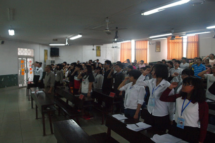 大会进行到第五项,青志部部长董亚南宣布共建梦想社区志愿者名单,并举行志愿者接受志愿者聘书仪式。
