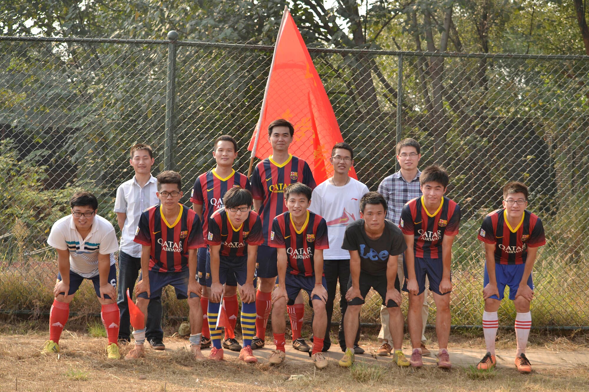 踢球技术哪院强?赛场上各院发挥协作精神,各领风骚,充分展现出湘大研究生顽强拼搏的积极面貌,为我校和谐校园体育文化建设添砖加瓦。以文新院研究生足球代表队来说,研一研二的同学们不畏艰难,全新的阵容,陌生的组合。尽管面对的是理工科院系的众多劲旅,队员们的区域防守、交叉换位、补位等依然配合得十分默契。队长张磊、刘潇宇担任前锋,率领中场巩辉、易佳稳,后卫何晓军、柳王敏,守门员陈一言,替补刘涛等众成员,无视全身的土灰和汗水,提振信心,毫不松懈,竭尽全力“战斗”到最后一刻。