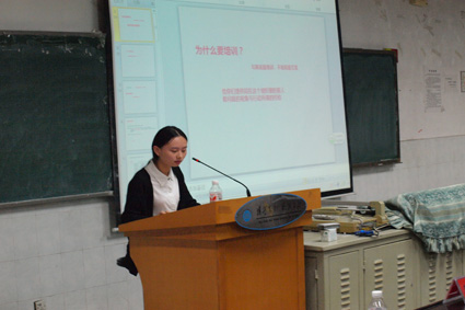 首先,汤学文上台进行培训。他一针见血地指出了大学和高中生活的差别,鼓励大家主动开阔自己的学习范围,认真审慎地设立目标,通过在学生会的实践,更加迅速地适应大学生活。随后,他结合幻灯片,向大家形象地介绍本校的团学组织及校学生会的概况和活动,鼓励大家脚踏实地做事,学会反思总结。而后,他以“打工皇帝”唐骏为例,强调把握机遇的重要性。