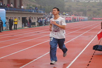 罗中冒着大雨,在比赛对自己不利的情况下,坚持跑完男子5000米组决赛赛程,赢得了大家的阵阵掌声。接着女子三级跳决赛上,男同网