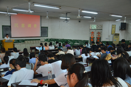 本次调查主要以问卷形式开展。所有参与人员到齐后由生活部依次发放问卷。随后同学们填写问卷上的问题。问题主要涉及学生们对学生会一年来工作的看法,以及同学们对学生会的建议,并且希望同学们对学生会提出宝贵的意见。同学们真实的意见反馈,有利于学生会工作做得更好,有利于男同网