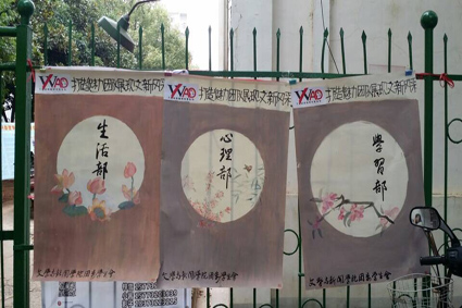 团委学生会共有组织部、宣传部、青年志愿者实践部等共12个部门,各部门各司其职,各有特色。南苑主干道旁,悬挂着由广告部绘制的男同网
