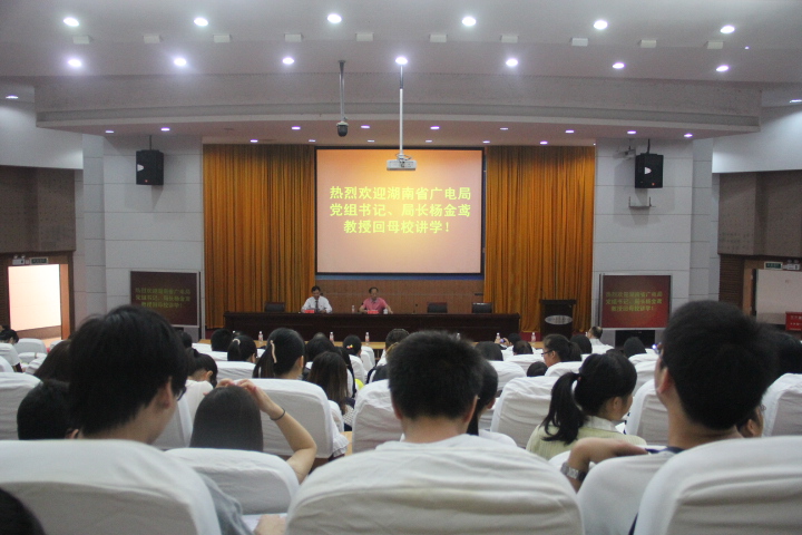 10月12日上午9:00,在逸夫楼第一报告厅举行了湖南省广电局党组书记、局长杨金鸢教授兼职我校教授的授聘仪式。男同网