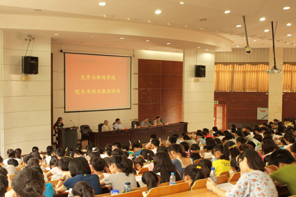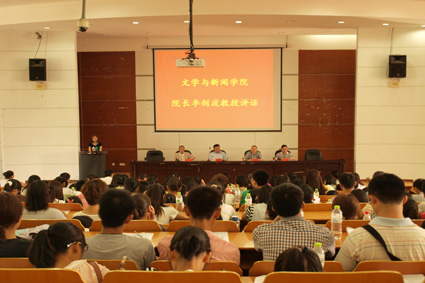 院长李剑波教授在典礼上做了激情洋溢的讲话,他首先代表老师向新生表示热烈的欢迎。李剑波院长引用各种数据向全院新生介绍了文新院各专业在全校、全省乃至全国的地位,并介绍了男同网