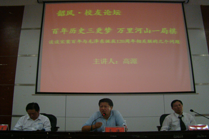 紧接着,高源先生作了题为《百年历史三更梦,万里河山一局棋——谈谈宋案百年与毛泽东诞辰120周年相关联的几个问题》的报告。他分别从宋案的大致经过与背景、宋案后的中国历史走向、宋教仁对毛泽东的影响、新时期启蒙与反思回顾、改革必须要有成本概念、用大历史观评价毛泽东等六个方面探讨历史与现实,思索哲学与未来。高源先生强调,只有从多方面了解历史,才能尽可能接近事实真相,形成自己的判断。整个报告,高先生对历史人物,历史事件,近代史、党史著名学者及其学术著作如数家珍,视角新颖独特,展现了深厚的史学功底和素养。