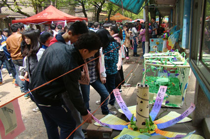中午十二点,投票正式开始。大一九个参赛班级的参赛作品在北苑宣传栏一侧依次展出,12级各班学生积极踊跃地向过往的同学介绍自己班级的手抄报作品,同时也积极拉票,为班级争取荣誉。北苑摆点处顿时一派热火朝天的热闹景象。一千张人气投票卡在短短五十分钟内投票完毕。本次投票结果将以计分形式计入各班作品决赛最后得分。