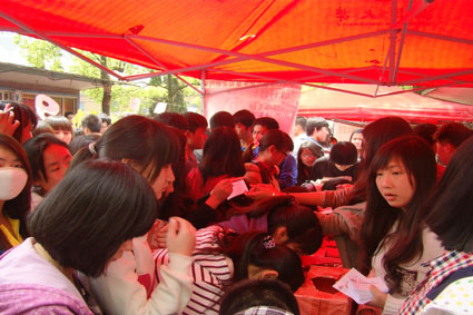 4月12日,“锋行锋影”班团支部手抄报大赛在北苑主干道摆点,进行人气投票,为4月13日的手抄报决赛预热。12级新生踊跃参与,现场热闹非凡。