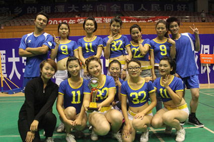以9.53分的高分获得本届啦啦操比赛的第三名,冠、亚军则由商学院和能源工程学院摘得。