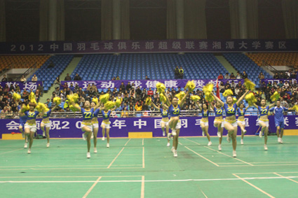 学生啦啦操比赛在新体育馆正式开始。本次活动由体育教学部承办,到场的嘉宾有体育教学部主任熊茂湘教授、体育教学部副主任罗智波教授等。