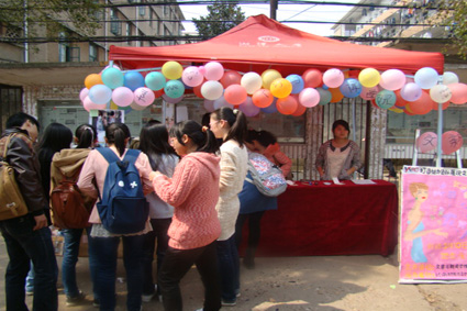 女生部精心筹划的女生节特别活动“伊衣佳人”在北苑摆点宣传,本次活动以环保为主题,各班使用废弃材料制作衣服,展现女生风采。