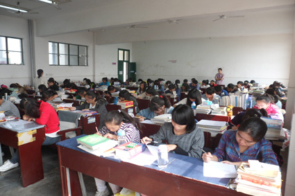 考场里早早便坐满了参加考试的学员,他们不浪费最后一点时间,积极为考试做准备,或是相互提问或是默默背诵。考试开始后,大家抓紧时间答题,没有丝毫懈怠,可见大家对团课结业考试的重视程度。