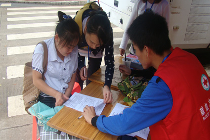 团委学生会青年志愿者实践部在南苑组织展开了“爱心血库”义务献血活动,这是2012级新生入学以来的第一次义务献血活动。