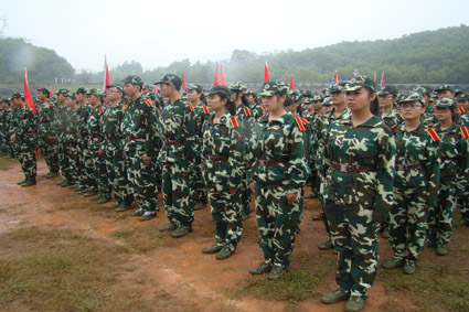 新生就已集合完毕。天依然黑着,雨淅淅沥沥地下,但这丝毫没有影响到新生们的热情,他们穿戴整齐,气宇轩昂,按时抵达集合地点,并最早进入二田,由此可见他们对大学军训的重视与期待。早早集合完毕的新生们,在细雨中开始了拉歌比赛,嘹亮而富有朝气的军歌穿透阴沉的大气,回响在二田的上空。各新生班级的辅导员们都是全程陪同,拿伞带水,给予照应。