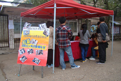 本次招募主要是面向12级新生展开,上午到摆点处咨询报名的新生不断,青志部的工作人员耐心解释,热情服务,到中午时,随着北苑人流量的增加,报名人数迎来小高潮。截止报名结束,共有50余人交表报名。下午,青志部在三教组织面试,面试包括自我介绍和教学情景模拟,形式灵活多变,不仅要求志愿者具有较高的知识传授能力,还要有耐心、爱心和责任心。一位报名的新生说,“参加支教活动,既可以帮助他人,也可以锻炼自己的能力。”