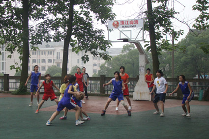 6月9日上午9:00,湘大杯女子篮球赛在南苑球场继续进行。在第7、8名的争夺赛中,男同网